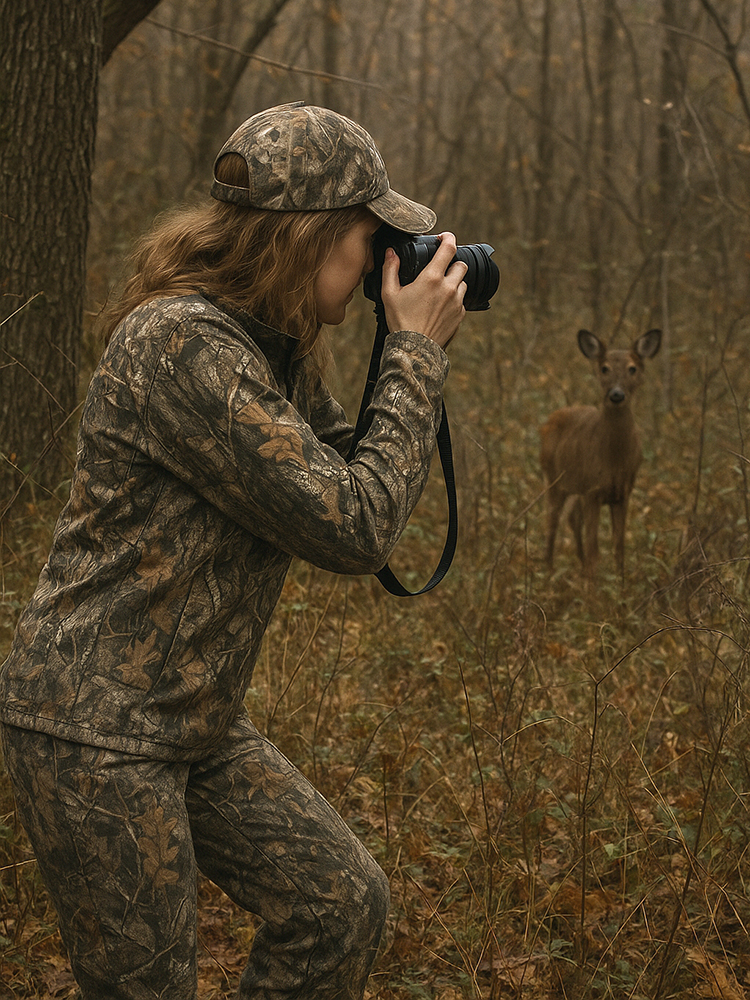 Mit Sachen aus diesem Stoff bist Du im Wald nahezu unsichtbar und dazu vor Wind und Wetter geschützt. Der dekorative, realistische Druck macht sich aber auch im Großstadtjungel gut .