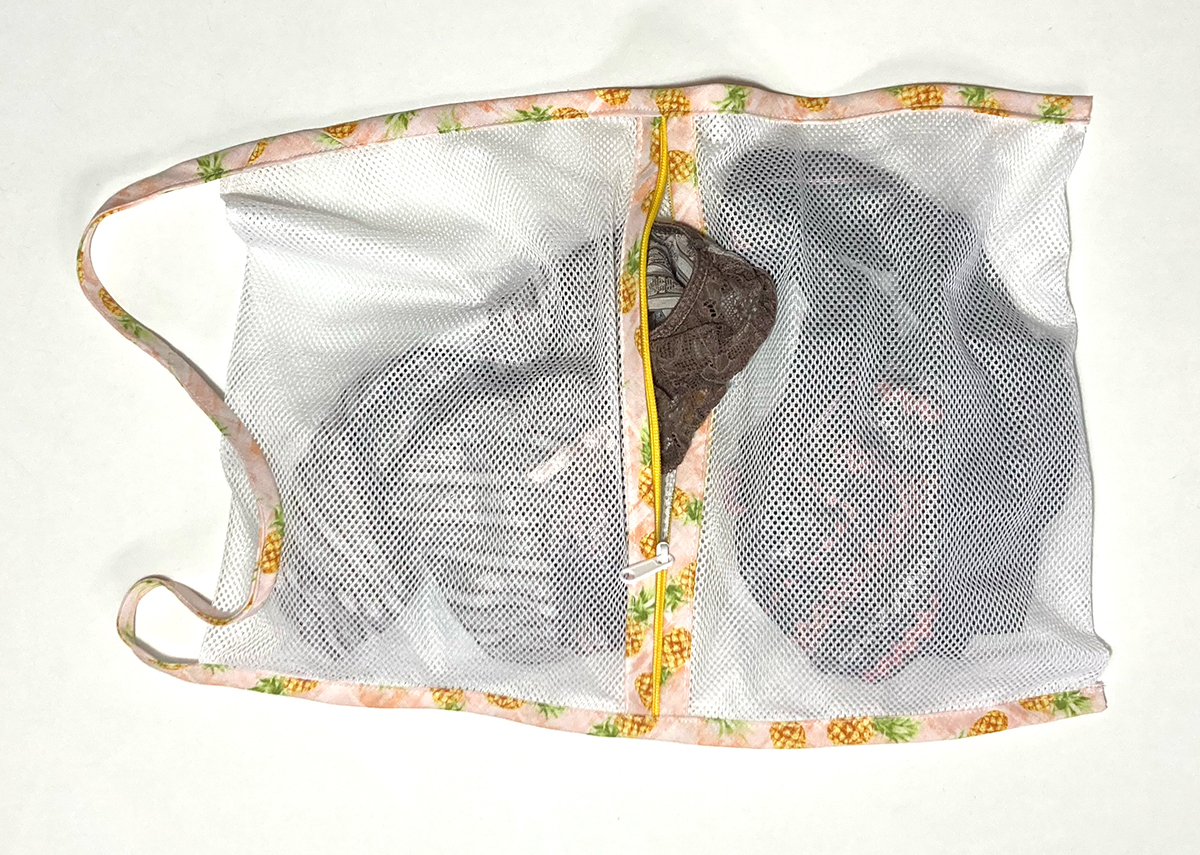 Verpackt in diesem Netz kann feine Wäsche schonend in der Maschine gewaschen werden. Der Netzstoff ist wasserdurchlässig, ruckzuck wieder trocken und bis 60Grad in der Maschine waschbar. Die Kanten haben wir mit selbst gemachtem Schrägband aus bedrucktem Baumwollstoff eingefasst. Das Netz hat eine lange Schlaufe, mit der es in der Waschküche aufgehängt werden kann um auf den nächsten Einsatz zu warten. Unser Wäschenetz macht sich aber auch auf Reisen nützlich.